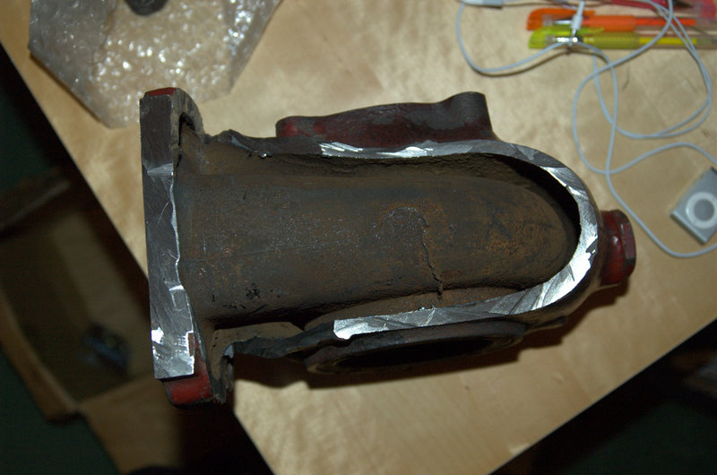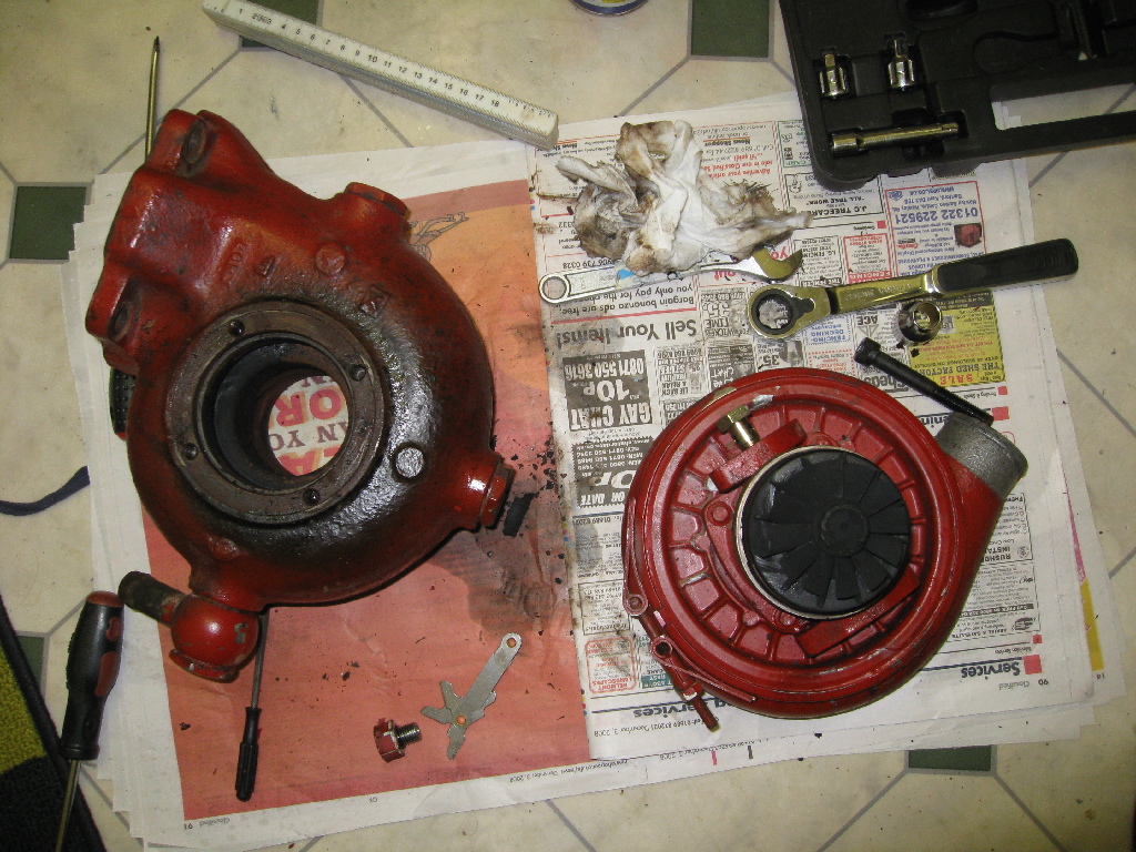 I realised the turbo would never fit between the block and the radiator in its original shape, so I decided to modify it slightly with an angle grinder. This also made the exhaust housing a lot lighter :)